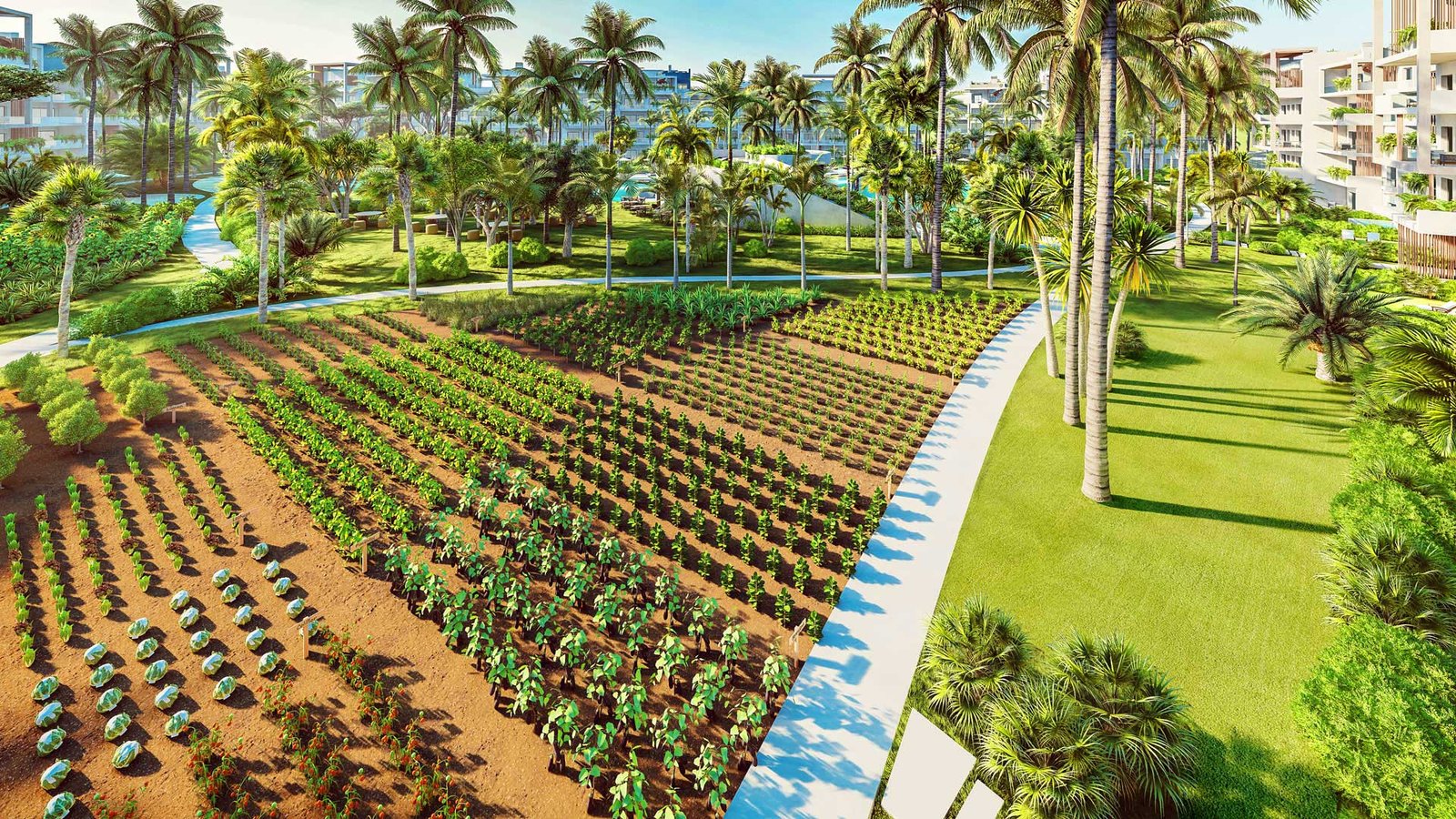 - Sustainable gardens filled with lush vegetation